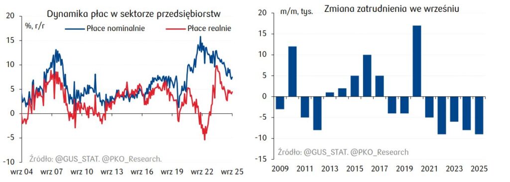 Pomimo lekkiego przyspieszenia dynamiki płac względem sierpnia, analitycy z PKO Banku Polskiego zaznaczają, że to nie jest argumentem przemawiającym “przeciwko obniżce stóp w listopadzie” przez Radę Polityki Pieniężnej.