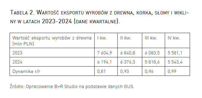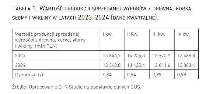 “Sumarycznie wartość produkcji sprzedanej w 2024 r. wyniosła 51 893,4 mln zł, co w porównaniu do 2023 r. przełożyło się na wyraźny spadek wynoszący około 7 proc. Podsumowując, 2024 rok był dla branży drzewnej rokiem spadków. ich dynamika z każdym kolejnym kwartałem zmniejszała się, jednakże nie zmieniło to całościowego obrazu” – przeczytamy w biuletynie branżowym na stronie OIGPM.