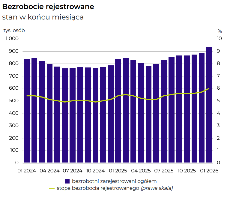 Polski rynek pracy wysyła najbardziej niepokojące sygnały od ponad czterech lat. Oficjalne dane Głównego Urzędu Statystycznego za styczeń 2026 roku potwierdzają: stopa bezrobocia wzrosła do poziomu 6 proc., osiągając pułap nienotowany od września 2021 roku.