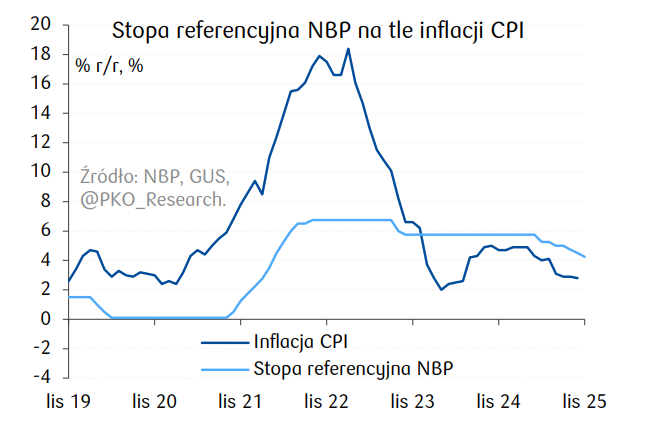Dodatkowo, RPP zapoznała się z elementami najnowszej projekcji makroekonomicznej NBP, której szczegółowe dane mają zostać opublikowane w najbliższych dniach. Już lipcowa projekcja przewidywała stopniowy spadek inflacji do 3,1 proc. w 2026 roku, a analitycy bankowi przed listopadowym posiedzeniem stawiali na scenariusz 2,9 proc. w przyszłym roku, co stanowiło mocny argument za dalszym luzowaniem.