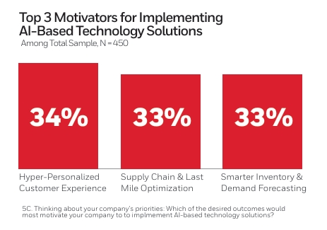 Dyrektorzy handlowi wymieniają trzy główne powody, dla których sztuczna inteligencja stała się w branży niezbędna. Co zaskakujące, na pierwszym miejscu wciąż pozostaje klient. Z badania wynika, że 34% firm stawia dziś na tworzenie hiperspersonalizowanych doświadczeń – dzięki AI mogą przygotować ofertę dokładnie dopasowaną do odbiorcy, tak by poczuł się wyjątkowo.