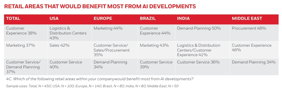 Zaledwie 1% globalnych liderów nie wdrożyło takich rozwiązań lub ich nie ocenia. To dowód na to, że AI w zaawansowanym handlu detalicznym staje się już niemal powszechna.