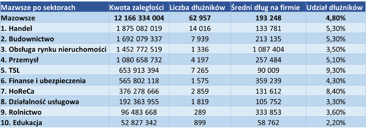 Przedstawione dane sugerują, że dla wielu mazowieckich firm problemy z płynnością przestały być incydentalne. Średnia zaległość na poziomie blisko 200 tys. zł to bariera, która realnie ogranicza zdolności rozwojowe i inwestycyjne przedsiębiorstw, tworząc niebezpieczną sieć powiązań dłużnych.