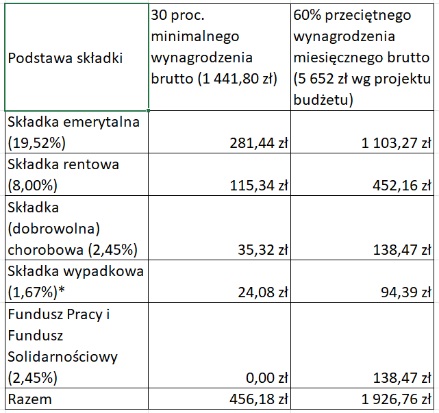 Prowadzący działalność muszą liczyć się z następującymi składkami: